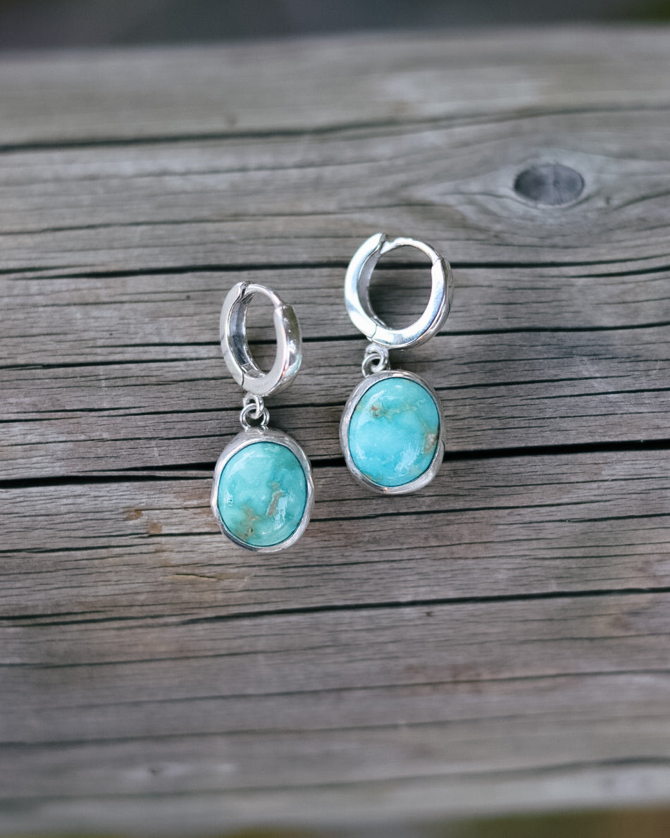 These handmade earrings feature High Quality Emerald Valley Turquoise