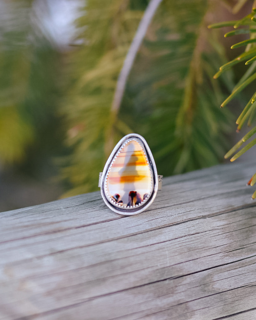 High Quality Yellowstone Montana Agate & Sterling Silver, this handmade statement ring is one of a kind.