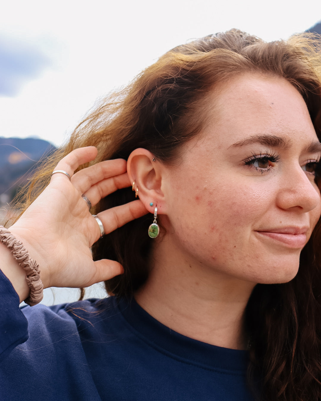 These handmade earrings feature High Quality Verde Valley Turquoise